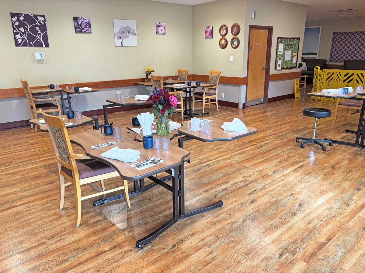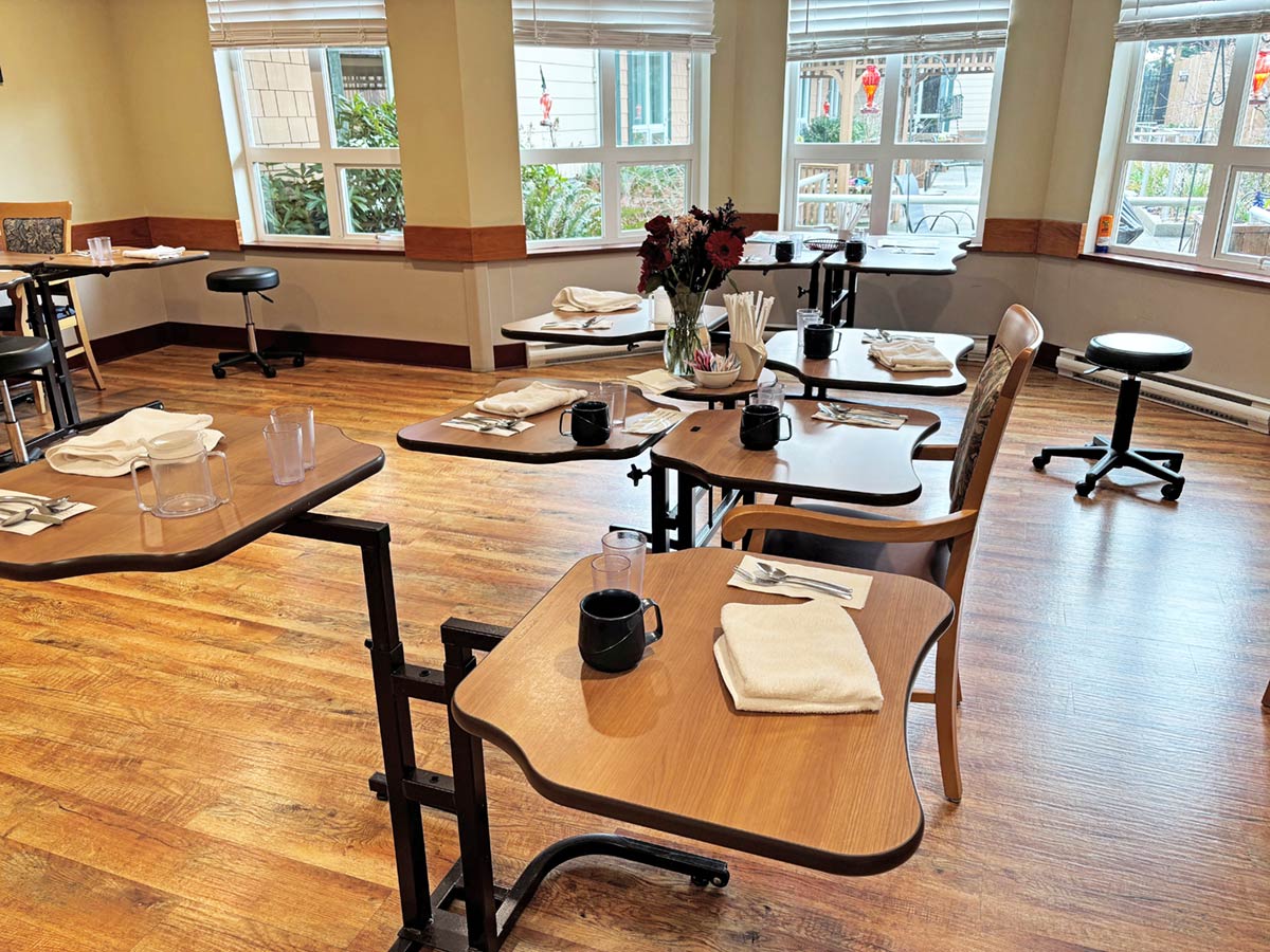 These large, sun-filled private rooms are comfortably furnished. All have ensuite bathrooms with overhead lifts. Residents are encouraged to bring their cherished belongings with them into their suites at Ayre Manor.